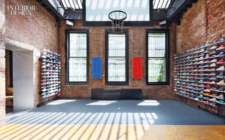 中城运动俱乐部(Midtown Athletic Club)的网球休息室四周是低铁玻璃镶板,中间夹着V Starr Interiors总裁维纳斯·威廉姆斯(Venus Williams)的照片。艾瑞克·莱维桌子为其内置的长椅服务。