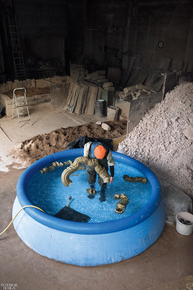 橱柜制作、室内建筑、家具设计……安东•阿尔瓦雷斯曾在瑞典和英国的大学学习上述三个学科(他是瑞典-智利混血)。这可能解释了他创作青铜雕塑的不同寻常的技术,其中12件作品曾在米兰的移动展(Salone del Mobile)上展出,由文化咨询公司制作5竞争在15世纪的圣贝纳迪诺莫纳什教堂举行。他先从一台大的悬挂在天花板上的挤出机开始,这台挤出机适合与蜡打交道。用一个电动机对蜡施加超过4000磅的压力,这种材料被推过不同的模具和切口,落在冷水中,在那里阿尔瓦雷斯的手塑造蜡的最终形式。一旦镶嵌好,每一件都是用青铜铸造的,每一件都是独一无二的。