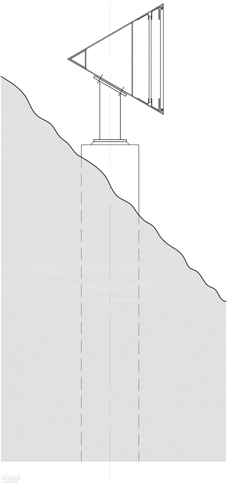折叠的铝,超轻和刚性,产生结构的形式,这看起来像一个视角的单片矩形,但实际上是三角形的。图片由SOM提供。