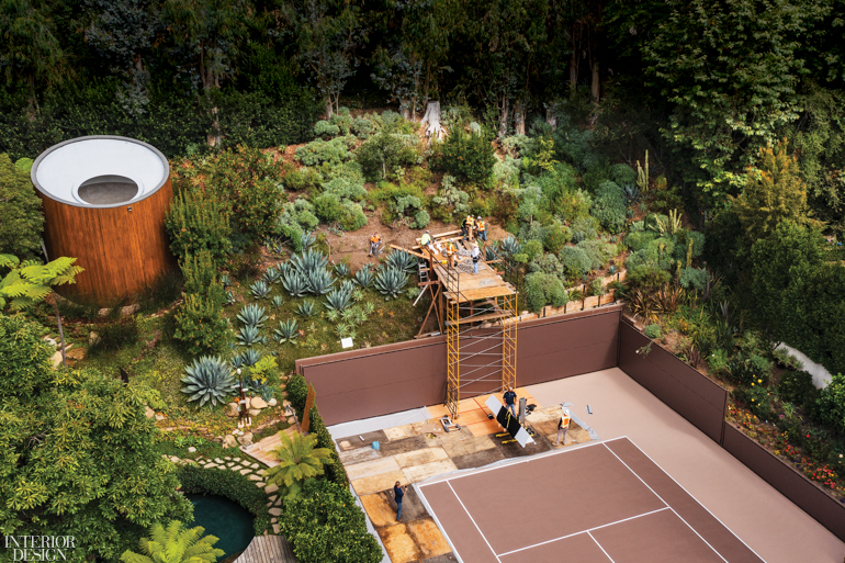 雕塑加入价格和范布雷达的住所,由Sci-arc创始人Ray Kappe建于1967年,俯瞰着他们的HardCourt网球场。摄影由Lance Gerber。