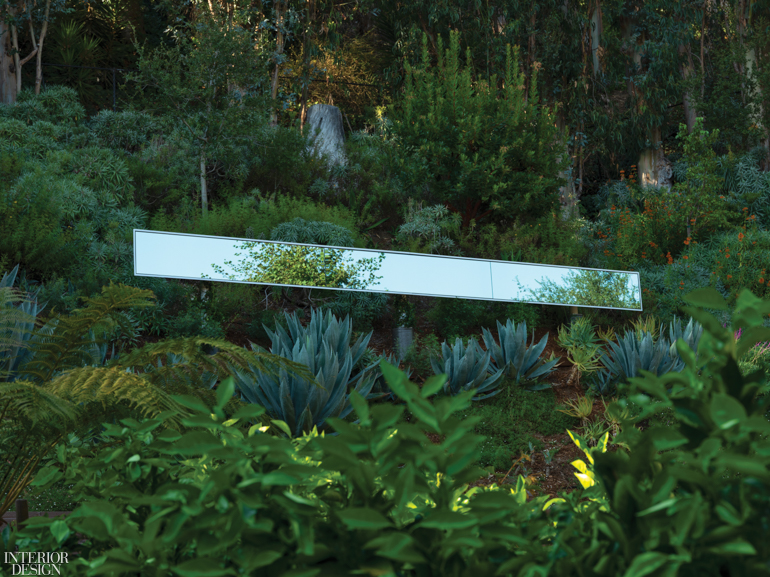 进入加州艺术收藏家达拉斯价格和丈夫,雕塑家鲍勃·瓦娘,拥有三个5英寸厚的钢柱进入地面。图片由SOM提供。