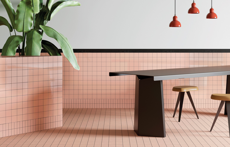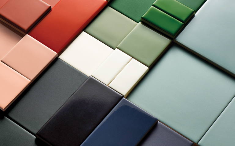 精确和历史是康斯坦丁Grcic的DIN瓷砖收藏的核心Mutina.它是Deutsches Institut für Normierung(德国标准化研究所)的首字母缩写,由遵循精确模块化逻辑的四种墙壁和地板尺寸组成:最大的格式是6英寸的正方形;把它切成两半,就会产生更小的尺寸,3 × 6英寸,一直到最小的1.5 × 3英寸。这条线的灵感来自Hansaviertel,这是二战后由Walter Gropius、Arne Jacobsen和Oscar Niemeyer等建筑师重建的柏林社区,现代主义公寓楼遵循严格的网格。这种瓷砖有八种珐琅颜色、哑光或光泽表面,另外还有六种复杂的“特殊块”用于边角和装饰。