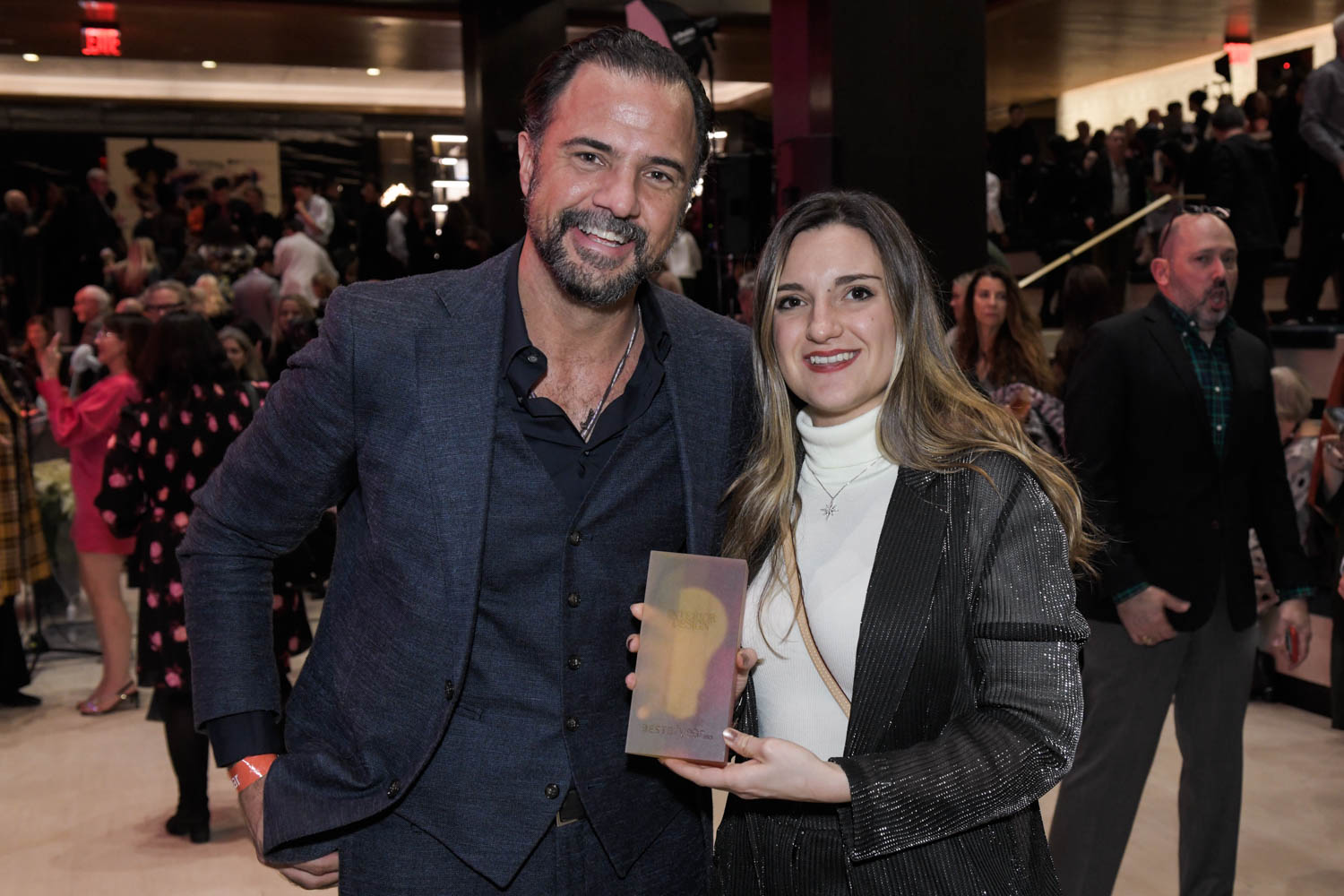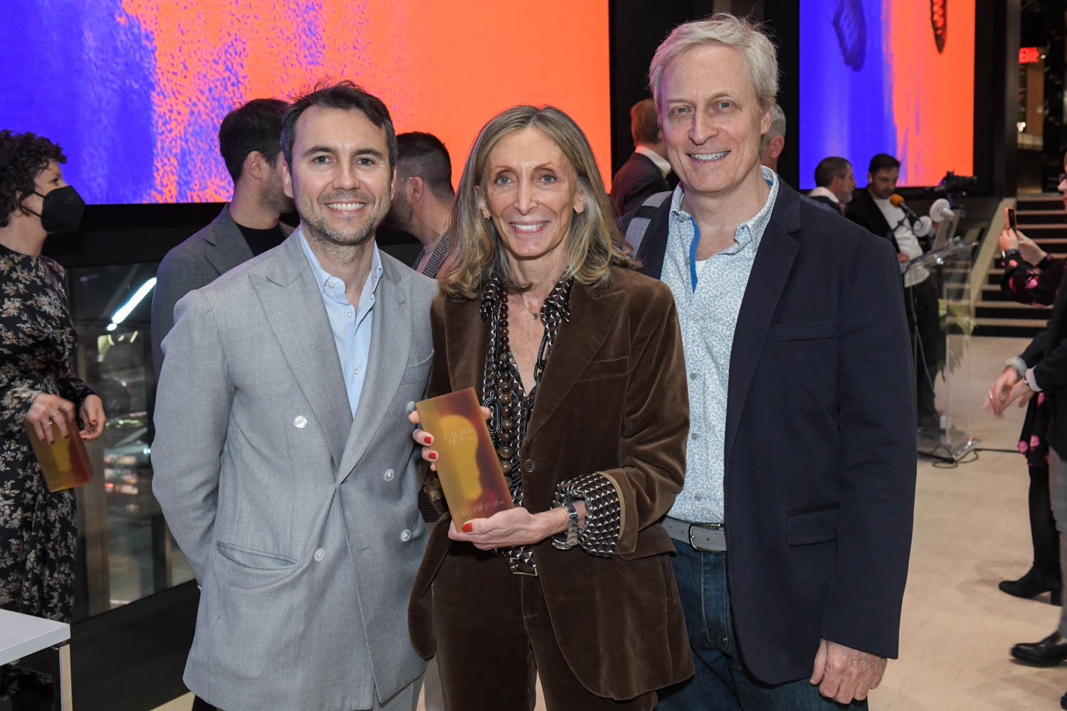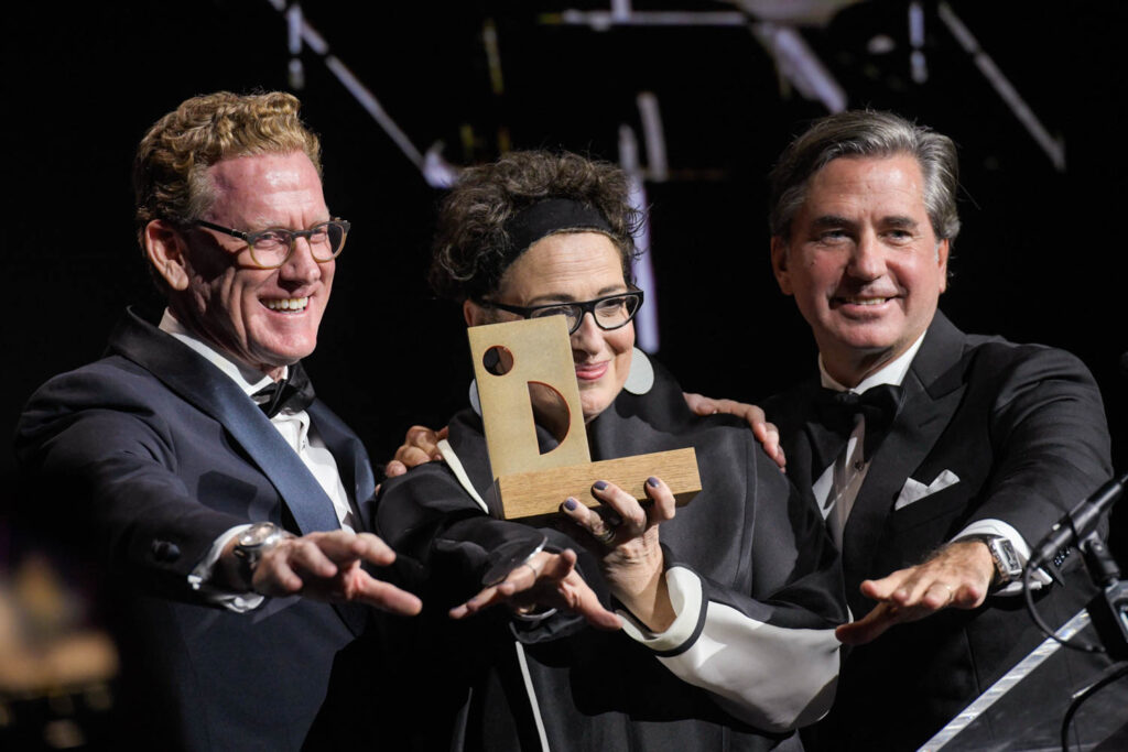 趣味并不止于此后天晚上 设计社区在曼哈顿Penn1集合yabovip下载年度最佳奖.设计师打包登陆台阶 欢呼时代 由Allen主持全晚欢呼和掌声 艾伦宣布优胜者跨项目类 产品类和学生奖从从本地素材制作的触目持久结构到反映自身独特环境的住宅设计,2022年最佳年度奖颁奖仪式以爆炸归来