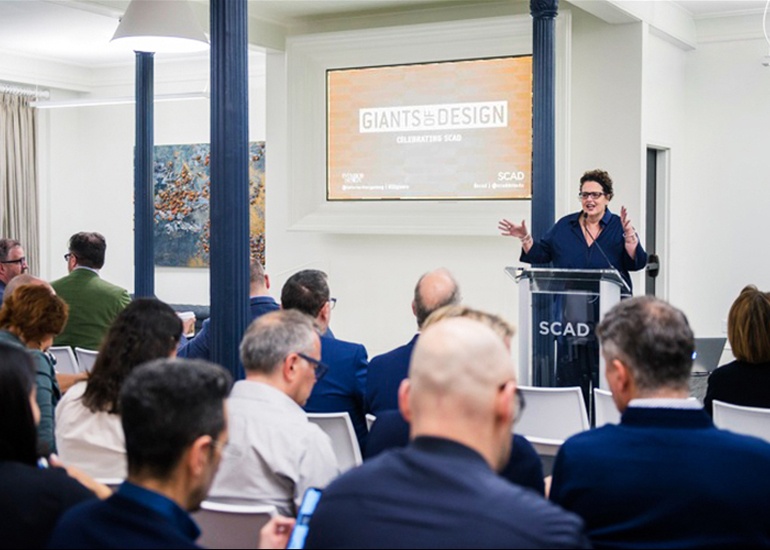 在星期日晚上在巨人之一时嗡嗡作响的网络鸡尾酒,与会者向Ruskin Hall报告萨凡纳艺术与设计学院(苏尔士州)星期一一大早。《巨人》杂志主编Cindy Allen与SCAD总裁兼创始人Paula Wallace正式宣布会议开幕。华莱士欢迎巨人队来到这所广受欢迎的大学,并介绍了当天的第一位演讲者:罗宾·威廉姆斯(Robin Williams), SCAD建筑史的主席。