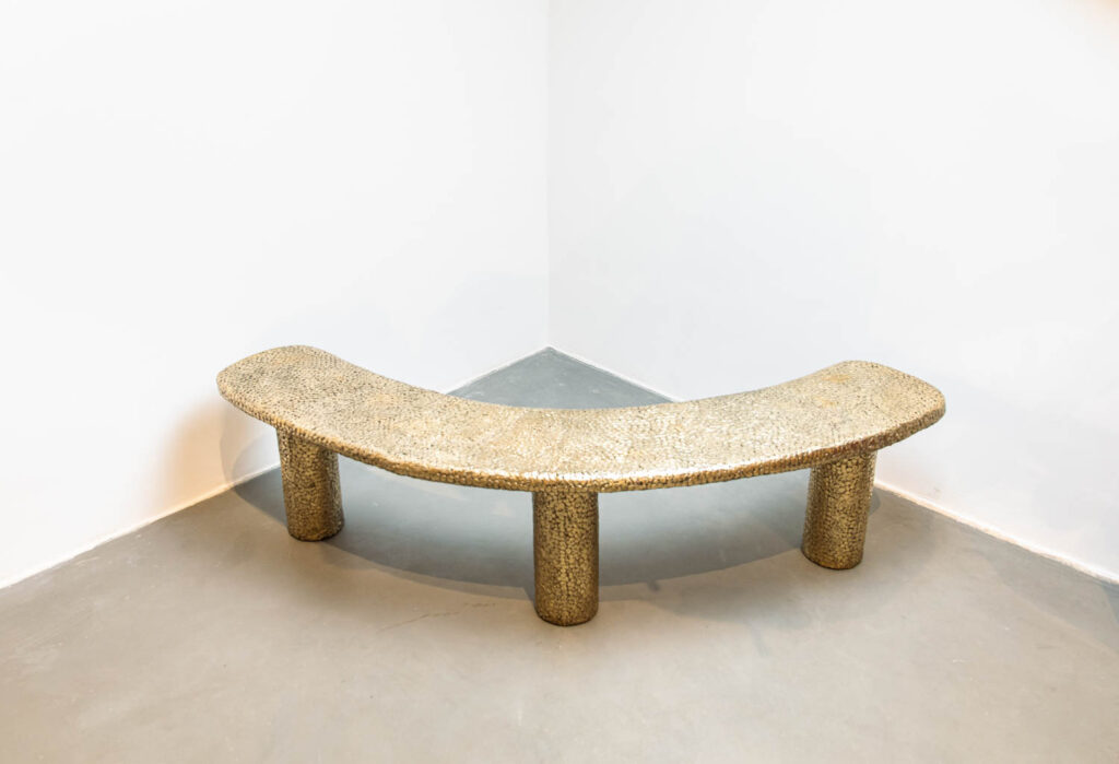 Marcus-Bello制作期间与拉各斯、尼日利亚和贝宁工匠并发工作指Surma部落时,设计师和工匠都用粘土粘起板凳表面纹理,从而生成硅模敬重贝宁王国传统,使用失蜡技术发明铜板曲线形式