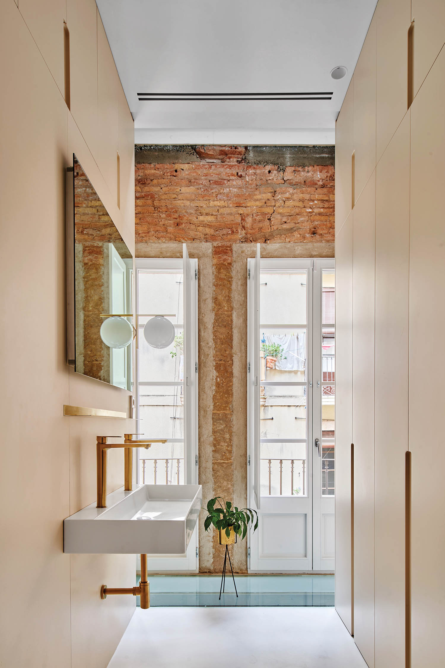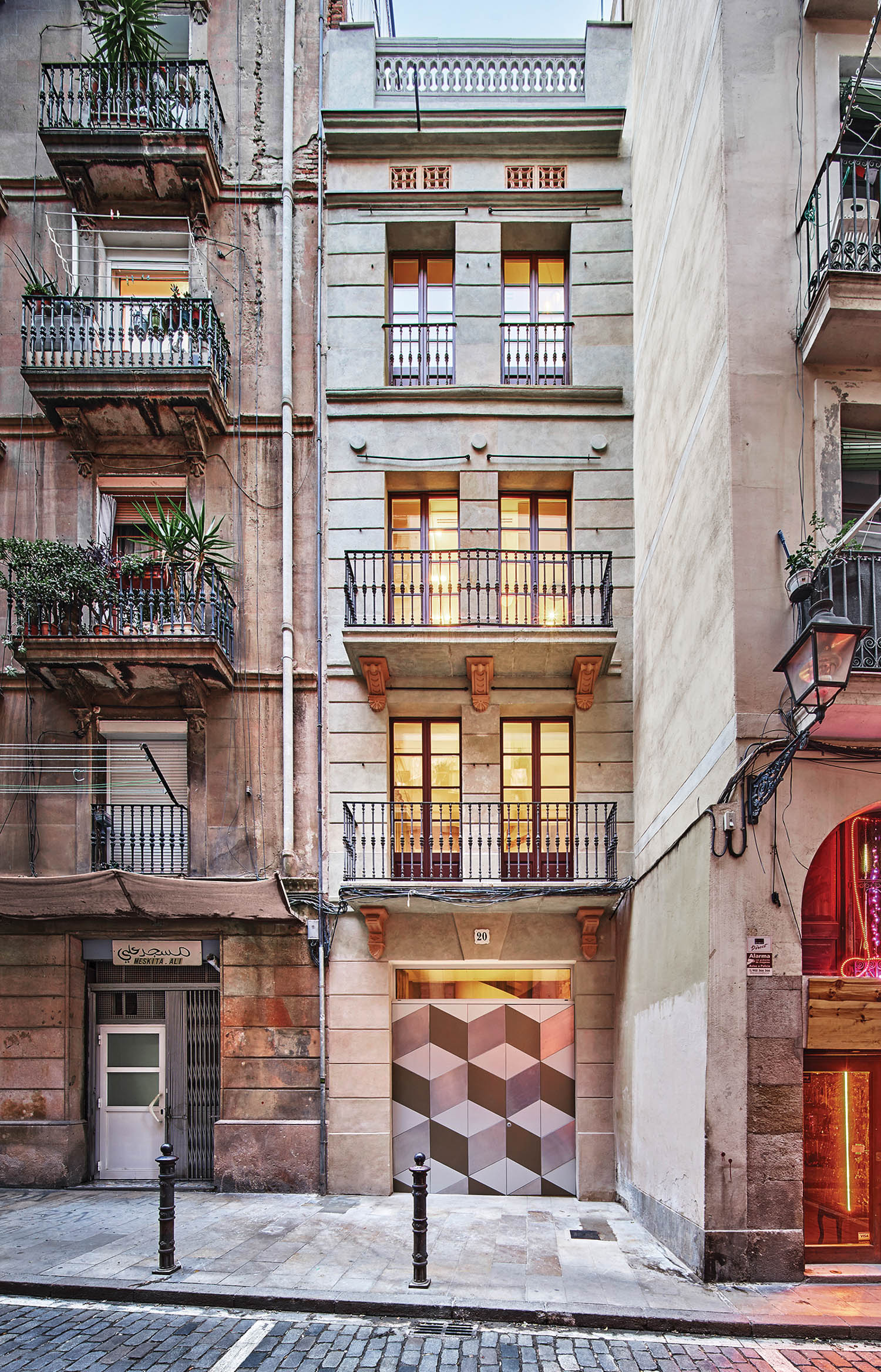 位于El Born市历史区之一,19世纪末市院称BSP20劳尔桑切斯2013年调用重构多亏监管和其他延迟,四层结构变换耗时8年完成,只有一件事保持不变:客户判定砖墙仍然裸露无变楼板全拆开 留下粗糙泥瓦壳 生动记录楼前替换楼层不触动街面或后方外墙,螺旋阶梯后风直达50尺空格天窗自然照亮后墙