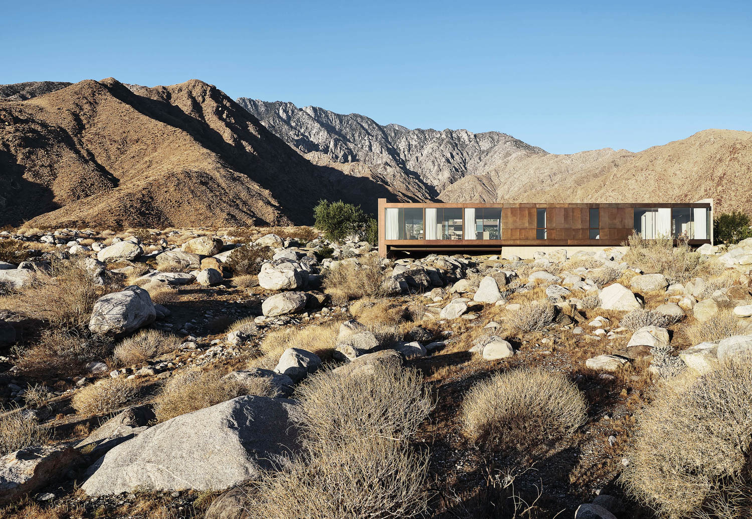 3800平方尺的周末退步 Woods+Dangaran插件浅高于现有巨石,以免撞击崎岖地形