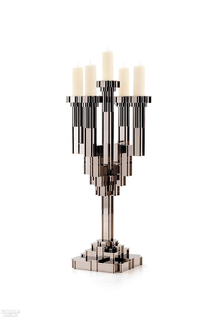 Van Bleiswijk的不锈钢NSNG Candelabrum是他没有螺钉的一部分,没有胶水系列,没有任何类型的固定剂的碎片。Vallindina Sommariva的摄影/内部;生产:Alice Ida Salerni。