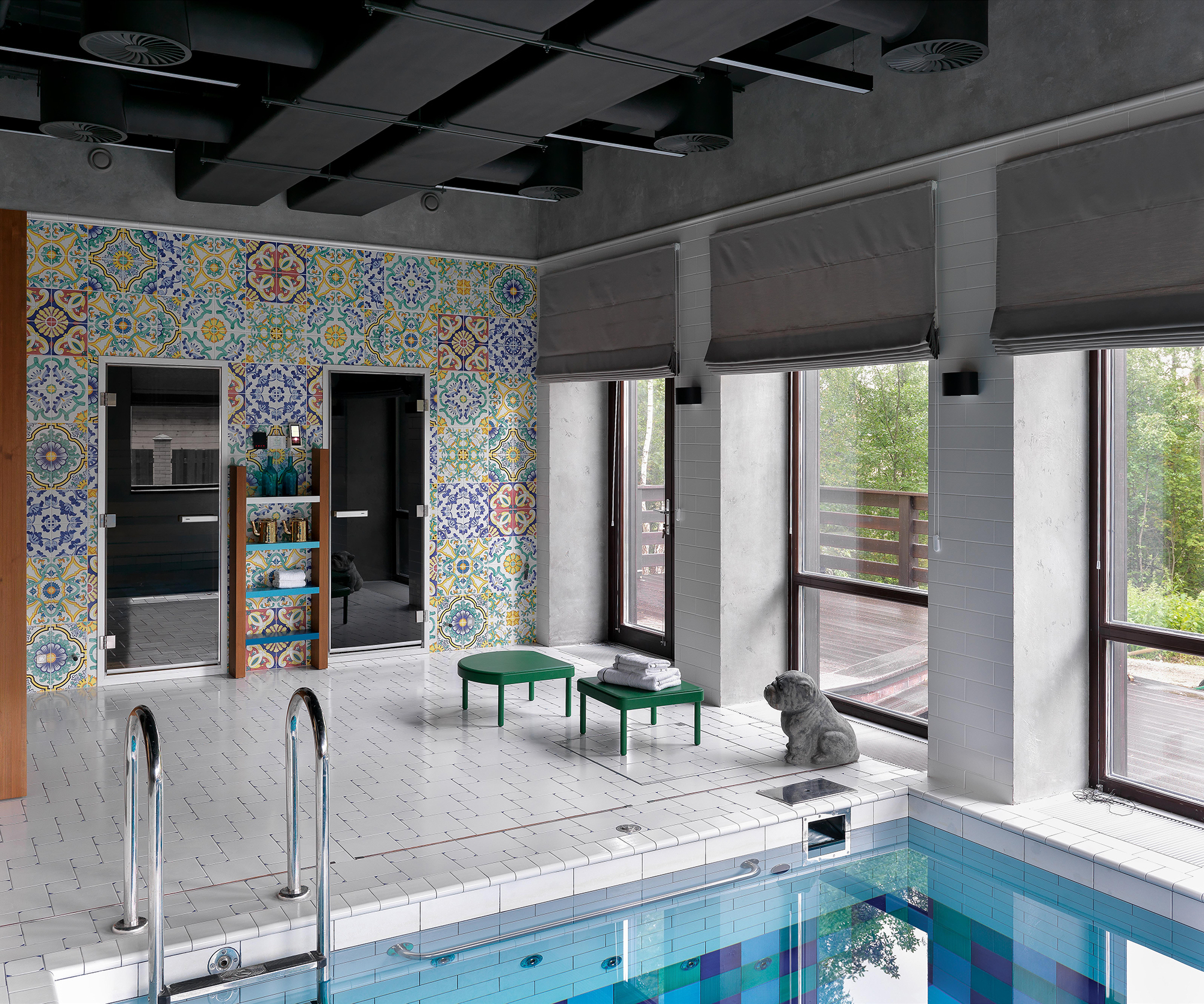莫斯科著名的新里加社区(Novaya Riga)的住宅倾向于亲英风格,蒙特维尔村(Montville village)等地区出现了村舍风格的豪宅。但这栋面积3200平方英尺(约合465平方米)的房子的主人想要的是更国际化一点的东西。艺术团体监督重建,包括安装了两个游泳池,一个浴室和一个家庭影院。泳池区域的马赛克墙和地板覆盖着定制的瓷砖。——杰西Dorris