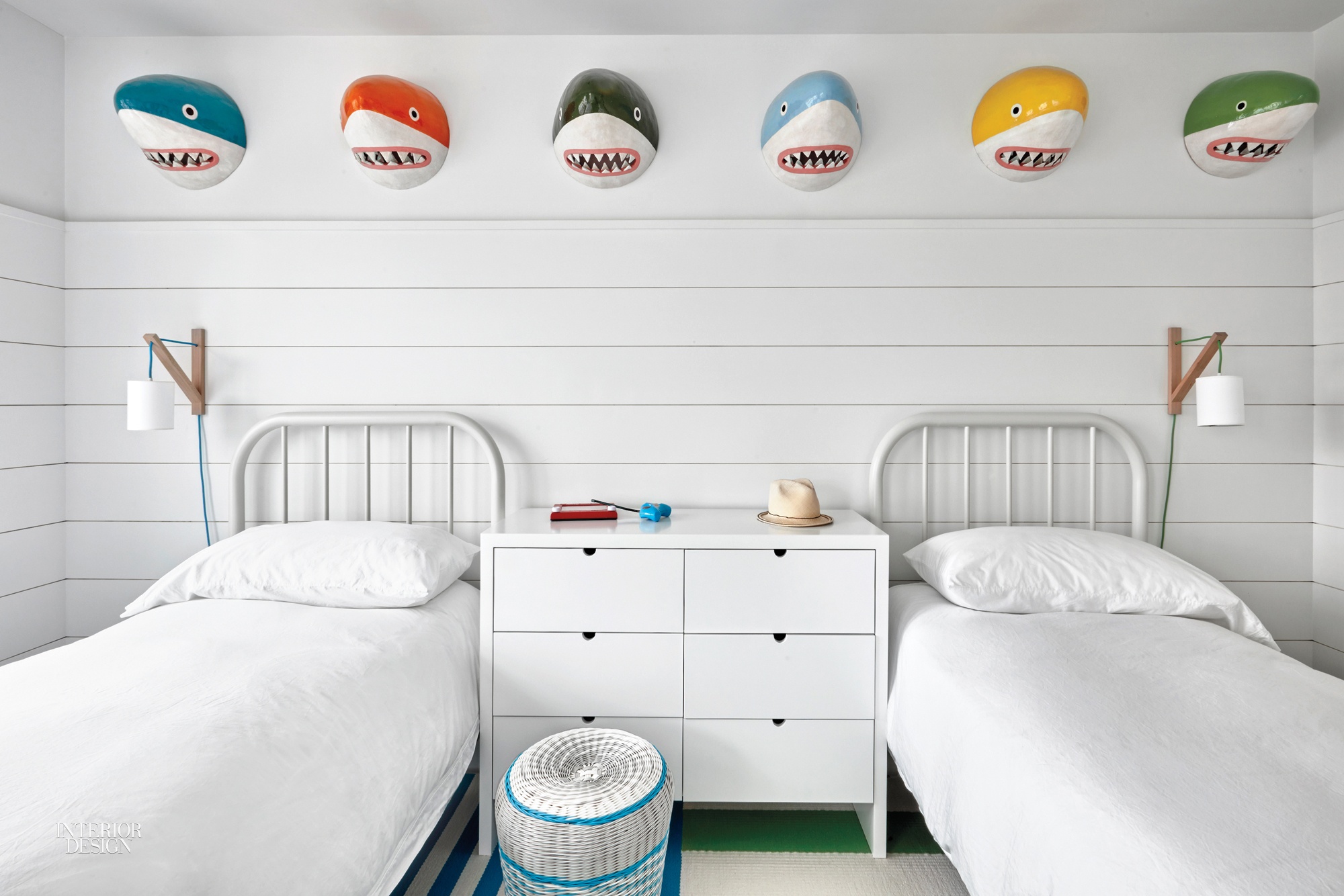 Ghislaine维纳我想澄清一下。“人们总是对我说,‘哦,你喜欢颜色,’”这位出生于荷兰的设计师说。“但事实是,我只能用颜色来衬托白色;只有白色才能让我打球。”一套有10个卧室的夏季别墅的主题当然是亮白Ghislaine Viñas室yabovip下载内设计在纽约蒙托克完成。在双胞胎的卧室里,洛里安·斯特恩(Lorien Stern)设计的陶瓷鲨鱼头悬挂在粉末涂层的钢架上。——Renzi珍