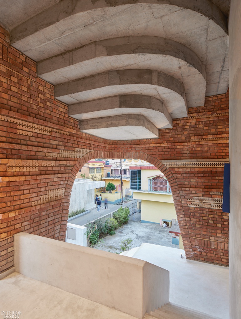 两层楼的设施国家设计工作室是对传统孟加拉寺庙赤陶外墙的当代演绎。摄影:Edmund Sumner