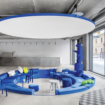 从这些不同的灵感,模块K使用图形设计原理形成了凝聚力的外观。从Beta简单,几何标志,Nguyen和她的团队中占据了提示,将40个潜在地标减少到他们的基本形状,如歌剧的圈子和教堂的矩形。然后,设计师在数字和物理模型中像Legos一样移动它们,在他们坐在一起坐在一起的五个标志性位置,试验不同的布局和重新排列的建筑物。“接下来,我们应用了纯色处理,因为我们希望它看起来比室内设计更像图形设计,”Nguyen解释说。yabovip下载“这对我们来说是新的,而不是在木头或砖头上思考,而是只是Photoshop中的颜色。”