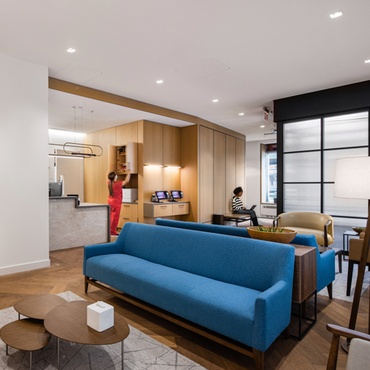 日本餐厅“南”(Minami)入驻东海岸,为多伦多市中心娱乐区增添了充满活力的文化景观,并带来了引人注目的视觉效果。Aburi餐饮集团与当地公司密切合作DesignAgency将这个4600平方英尺的空间改造成一个动态的、从日到夜的目的地,每个表面都传达出温暖而现代的美学。这是一个以饮料为重点的场所,90块彩绘成红色和橙色的薄纱布从木制吧台前的天花板上轻轻飘动,模仿着火焰的闪烁。上方装置的移动在餐桌上创造了一种亲密感,毛绒皮革座椅和拱形背光屏幕进一步强调了这一点,屏幕由定制的混合釉面涂在透明织物上,在柔和的光线中包裹着用餐者。日本画家木村秀树(Hideki Kimura)是Aburi餐厅青睐的艺术家,他的代表作青蛙、锦鲤和莲花出现在一幅手绘壁画中,这幅壁画被邮寄到多伦多,在那里通过数字扫描,并在现场应用到特色墙壁上。一个和谐而令人兴奋的mélange的色彩、图案和纹理,DesignAgency在其设计中捕捉到了南市食物的层层叠叠的复杂。