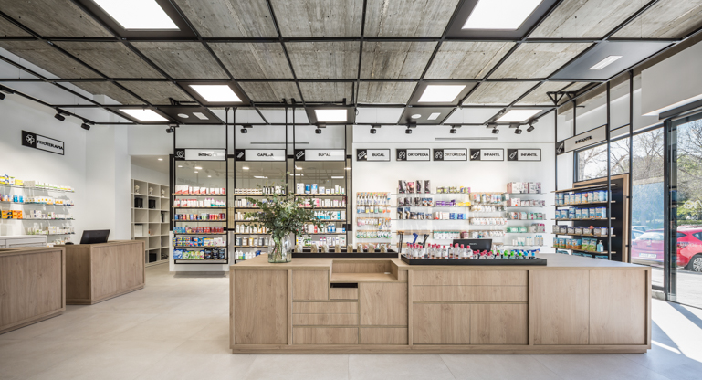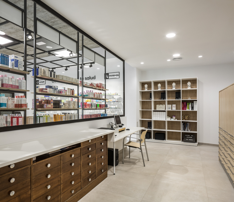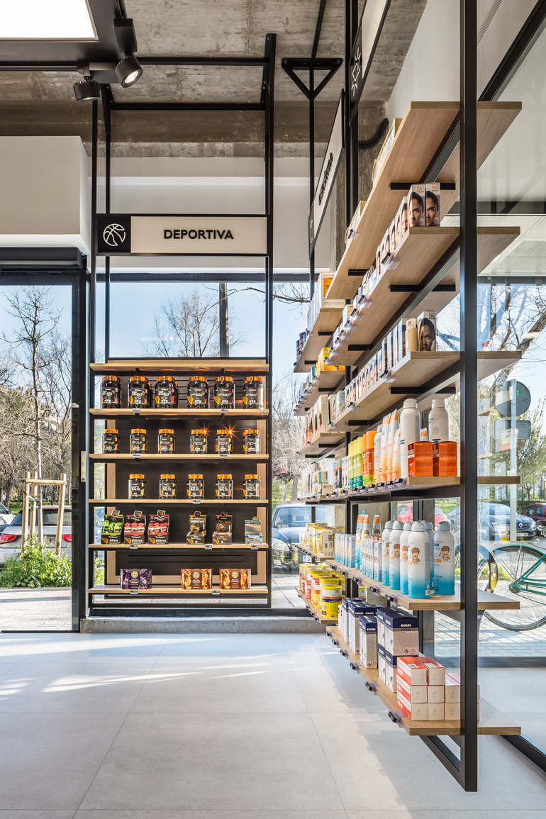 在城市受欢迎的海滩和阿尔布费拉湿地保护区公园之间,西班牙巴伦西亚的自然奇观与它的历史建筑可以说是同等重要的。将这两种元素融合在一起,本地公司Destudio Arquitectura-以其健康和健康的设计而闻名,为药房创建了一个诱人和舒适的空间,UNE Farmacia。最大限度地利用自然光Destudio Arquitectura团队在药店面向街道的立面上设计了延伸的窗户,并从天花板上悬挂LED灯屏,以突出特定的产品。开放的室内以中央展示岛为特色,由当地的木材制成,也用于周边的架子和几个服务台。项目团队的一名成员分享道:“进入这个健康空间是进入一个结合了熟悉、亲密和原创性的维度。”他指出,战略性放置的图形图标使购物者能够轻松地在下面的货架上找到他们需要的商品。裸露的混凝土和黑色漆铁创造了透明而复杂的美学,搭配易于导航的零售区域,旨在激发消费者的信心和药剂师和病人之间的有意义的关系。