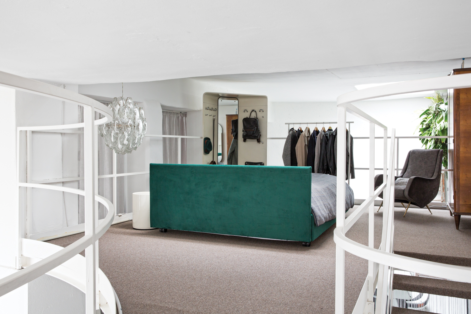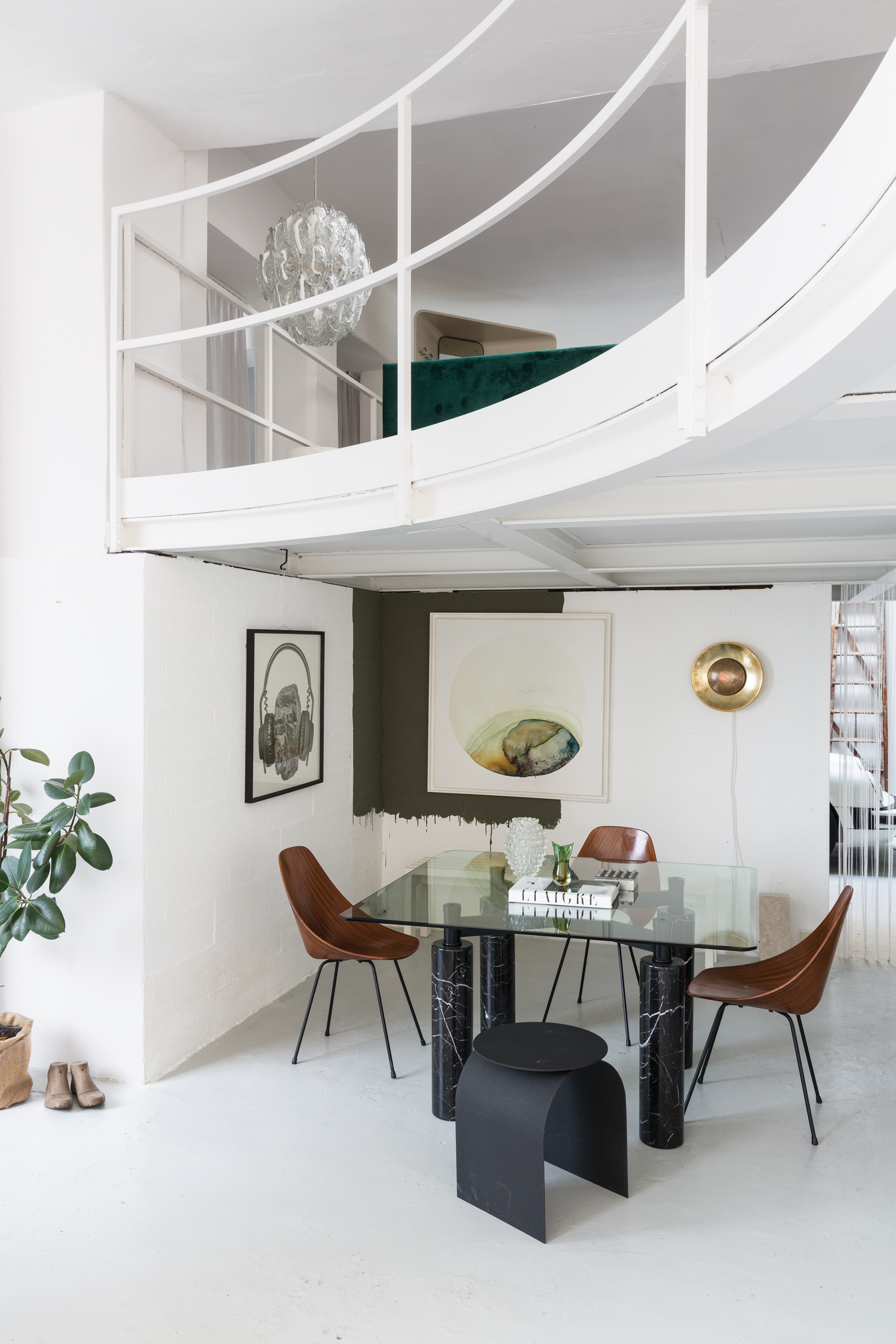 他的鸽舍的起源最肯定地扎根于过去。“我们收到了18世纪后期的话,它为邮政服务稳定,”他说。“在近年来,它担任办公室。”在获取地板空间后,Spinzi采用了一种测量的改造方法,与其工业元素合作 - 高大的多陷窗,混凝土楼层,开放式平面,并加入它们旧的更柔软的元素和新的。他的主要和唯一的架构干预是为了创造一个用餐区,在现有的夹层下面打开一段通道,这是一个前工作区域,即Sppzi变成了他的卧室。