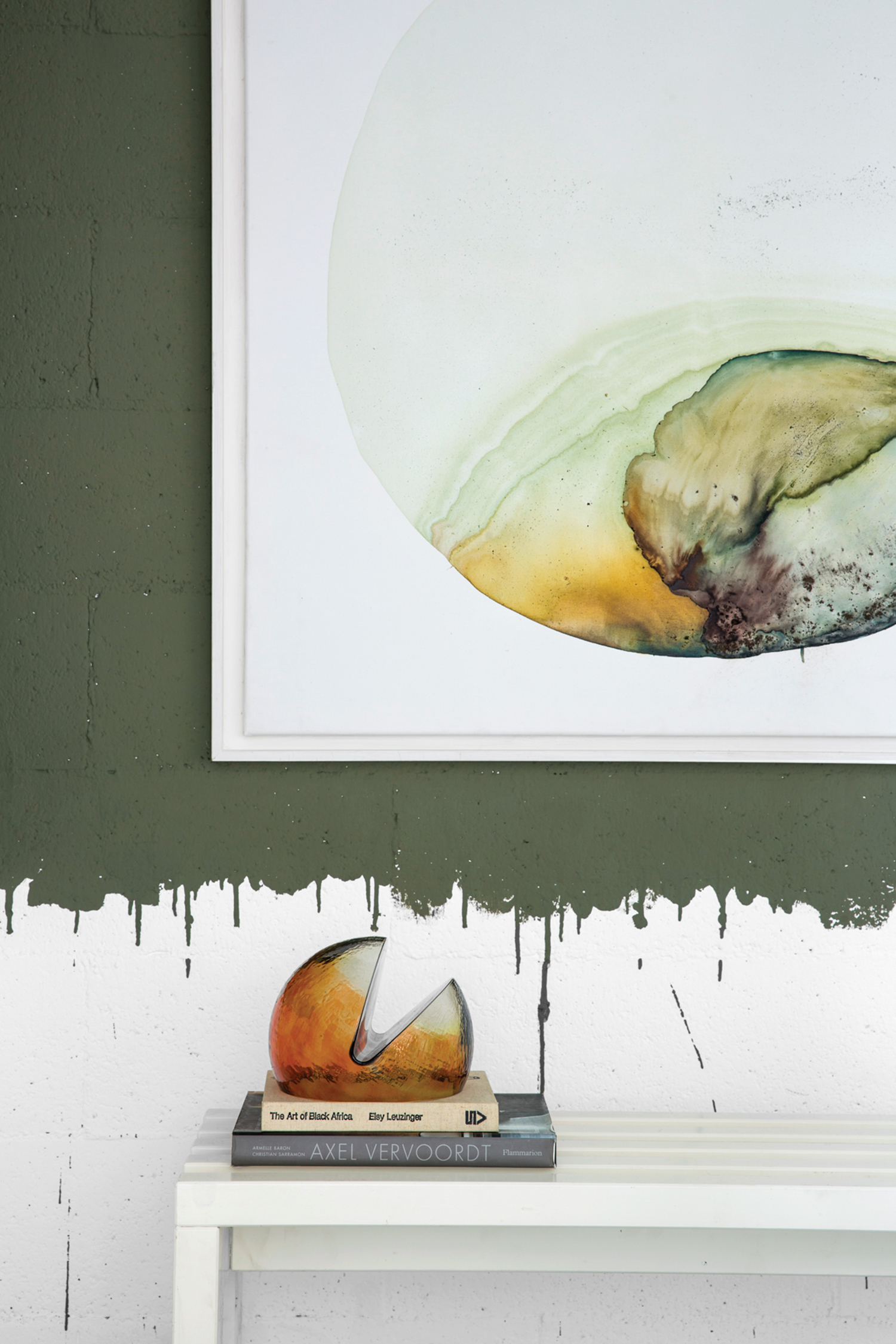 艺术品,偶尔的绿色镜头。“这是我最喜欢的颜色,”他说,