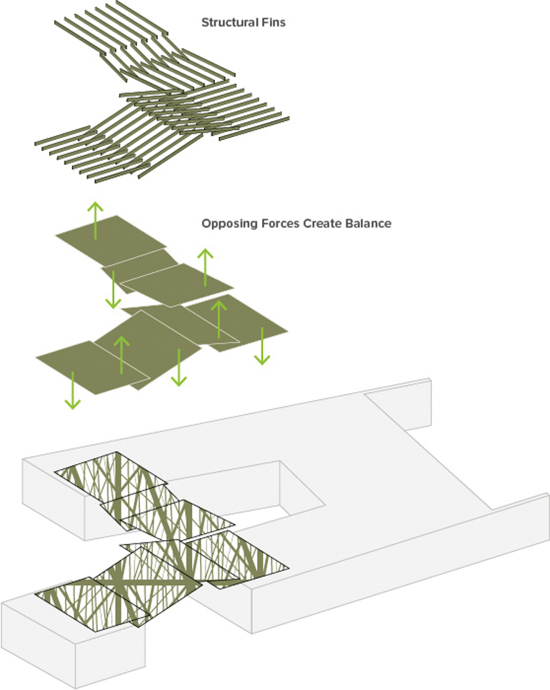 在设计开发期间,其结构图是用SketchUp,Illustrator和Photoshop的渲染。图片由Ross Barney Architects提供。