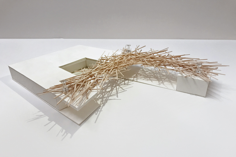 在芝加哥的林肯公园动物园,罗斯巴尼建筑师的新展馆由戏剧性的阳光折射冠层顶部,在原理图阶段,与概念研究模型分层的Balsa Dowels想象。摄影由罗斯巴尼建筑师提供。