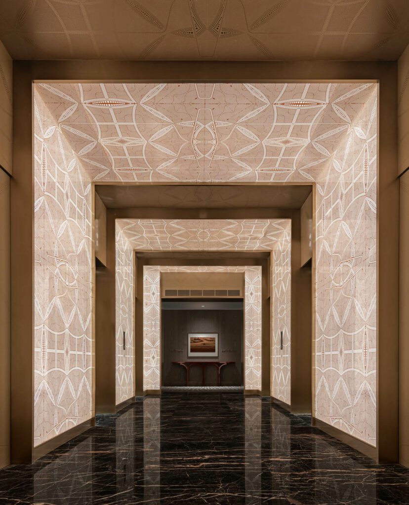天空大厅水特征设计成室内院院,上面多层丝绸线,与酒店墙外典型干燥气候形成对比客房配有模式屏幕和热补丁,反映文化图案更别提多自然光线-甚至在洗手间有窗-启发宾客从各种角度体验城市过去和现实