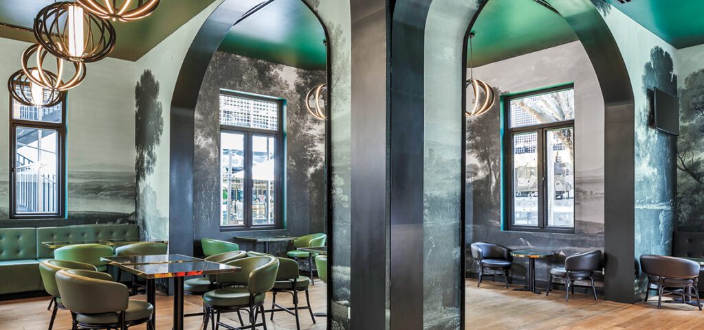 二分法通过品味、实用美学选择演化:初级卧室,隐藏在流水绿门后,装饰另一堵流水茶墙以隐藏自入室和装饰式卫生间,该卫生间装饰地铁瓦片和刷铜固定装置稀疏窗口添加最大阳光并在整个三室居室内降低低天花板设计师还定制小软软套件,包括沙发和餐桌,这样房主就可以享受他们的宽敞屋沙发和床都是定制的 装配相似垂直笛子 并增加全绿地和谐感