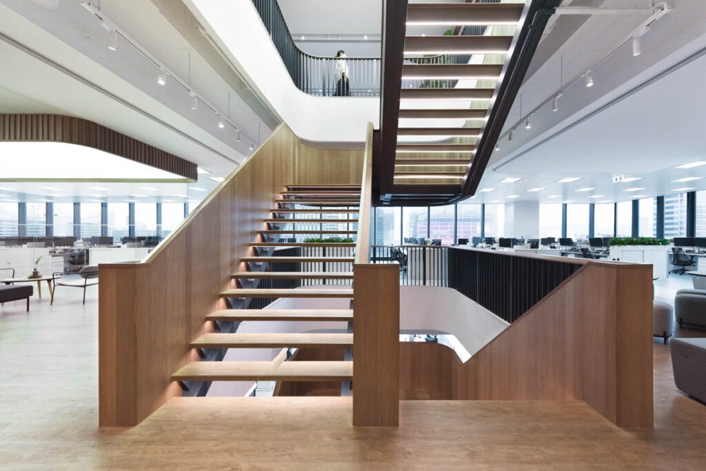 底特律市中心综合体填充办公楼的工作刚刚完成,当Pophouse决定炸穿两层大洞时。公司正规划新中心 Rock Ventures和RockFormations公司,设计师们设想一个巨型螺旋阶梯阶梯项目中心特征将不仅连接5万平方英尺办公楼下层和上层,而且还联合多队,为通常不一起工作上下楼梯的员工创造奇特机会接触,培养企业大企业成员感拆开新牌建楼将代价昂贵并造成混乱
