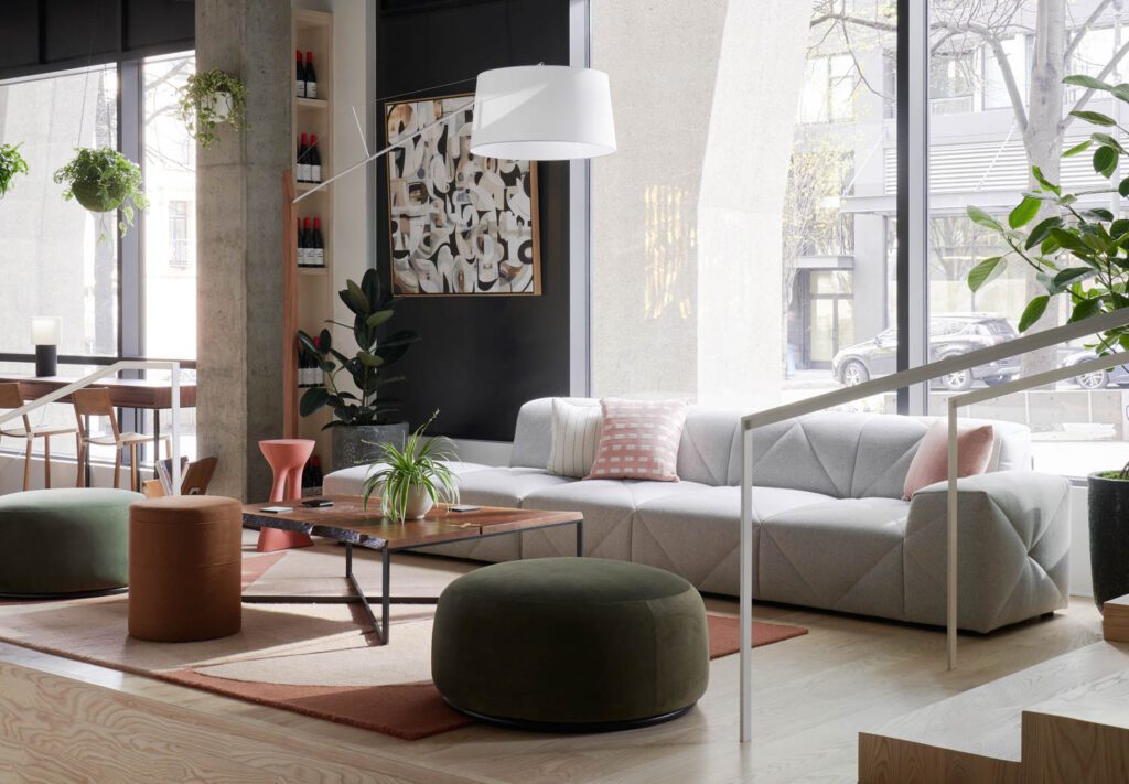 显示室任务中心商店背后的核心思想 由西雅图市中心波特实验零售空间 由本地公司设计格雷厄姆巴巴架构师.yabovip下载并用四千平方尺空间 搭建设计师内部设计师显示室旋转选择蓝芯牌像 Moooi、Carl Hansen和Stease合并新艺人产品, 并特别关注BIPOC工匠和历史排外社区创建者但它也是一个咖啡馆 鸡尾酒酒吧 和事件、会议和远程工作之地