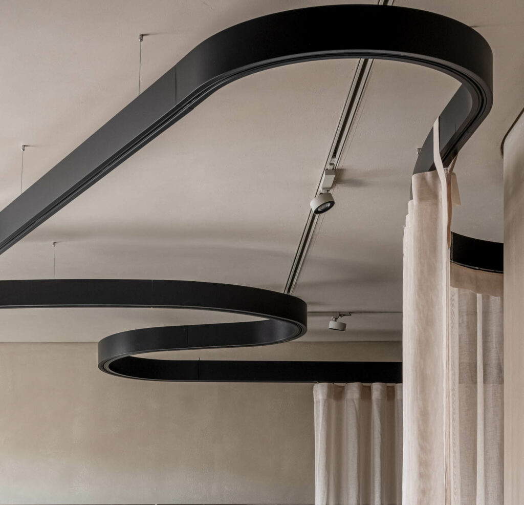 奶油盒内分层纹理,从金属口音到温暖森林和环氧树脂曲线形式,创造空间感觉像踏入云中引用Kambarov高手刷刷平线,黑轨连接云窗蛇沿天花板,使空间很容易转入区块,而房间周界则用单片冲刷-楼皮基块-从粉状环境流出声容口音