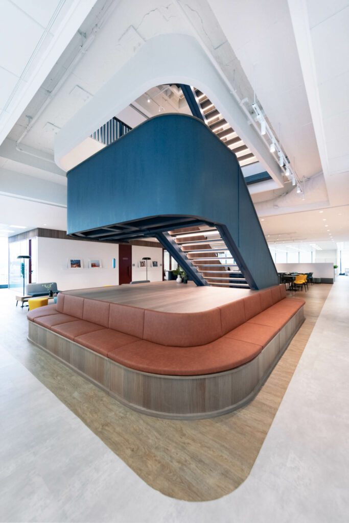 设计团队想搭建办公室回想三层轮船并建中央阶梯连通远洋引用遍历红海色调色调用普尔索尔线,表示船舶安全加载的最大深度Lorene Faure公司创建者补充道, Lorene Faure表示:「尽管我们希望通过设计大型轮廓,英国东部新空间提供起航所有优待,不需要海路