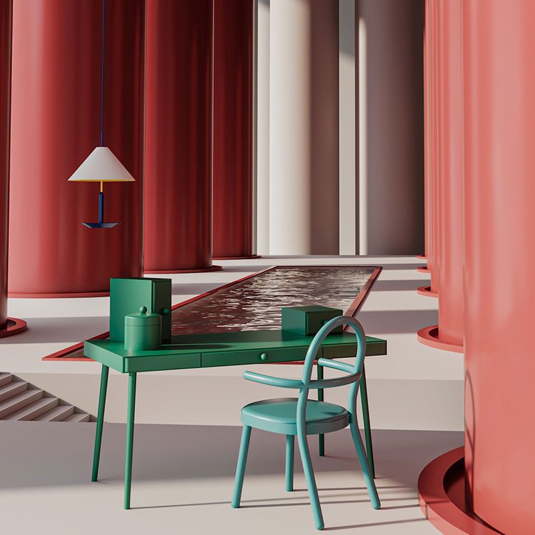 可回收铝组成Teoprie Blandet餐桌设计基础材料照片由Teophile Blandet/Maison&Objet提供