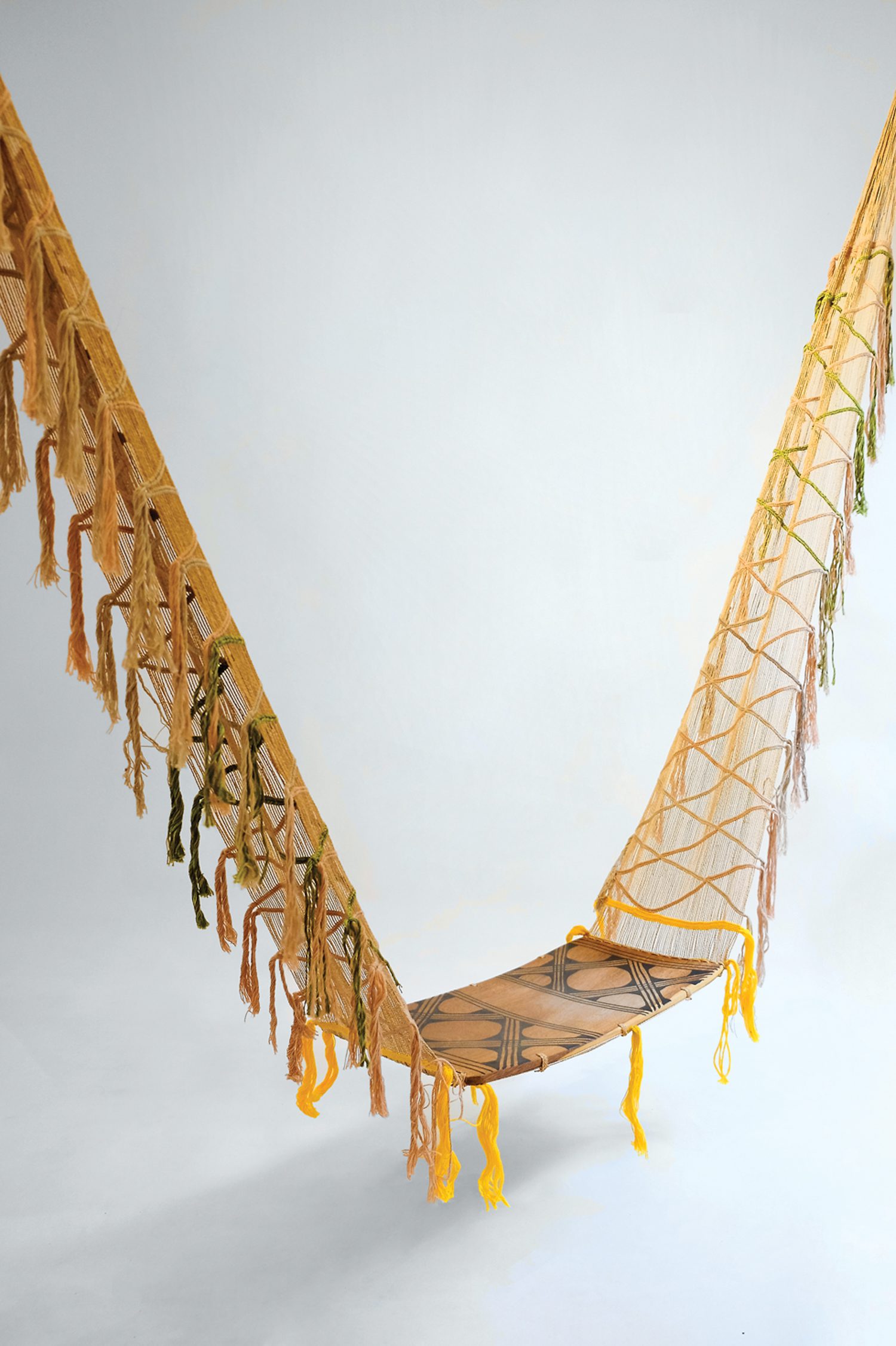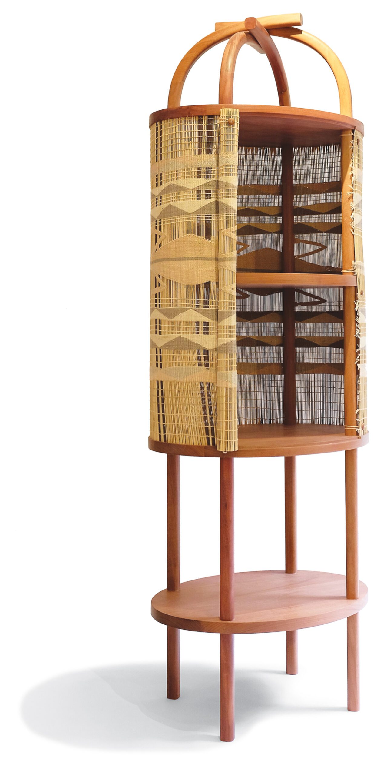 巴西设计师Maria Fernanda Paes de Barros新网集延卡图设计Mehinako工匠合作开发Alto Xingu市,位于马托格罗索州传统素材方法满足当今技术需求,如CNC刻图构建时序设计解释分组使用本地素材,包括cabreuva木头、草线和编织出自buriti棕榈树和自然染色料秋千Kaüpuna综合布里提线由Mehinako妇女采摘、净化和干男人为轮椅贡献木头 装饰木炭和Annatto图形传统住宅搭建启发Embira卡布列瓦长板,传统布立提和棉织地毯成为Oca衣柜的包装物,在旋转腿上高高的etagère式柜子掩蔽槽中两道双型滑动门转Cabreuva板对面只有6毫米与棉线交织使用采集的原材料自然染色开浦那市上兴村展示比尤表,刻实卷心菜,砖形木腿平衡并嵌入嵌套珠项链传统用于礼仪