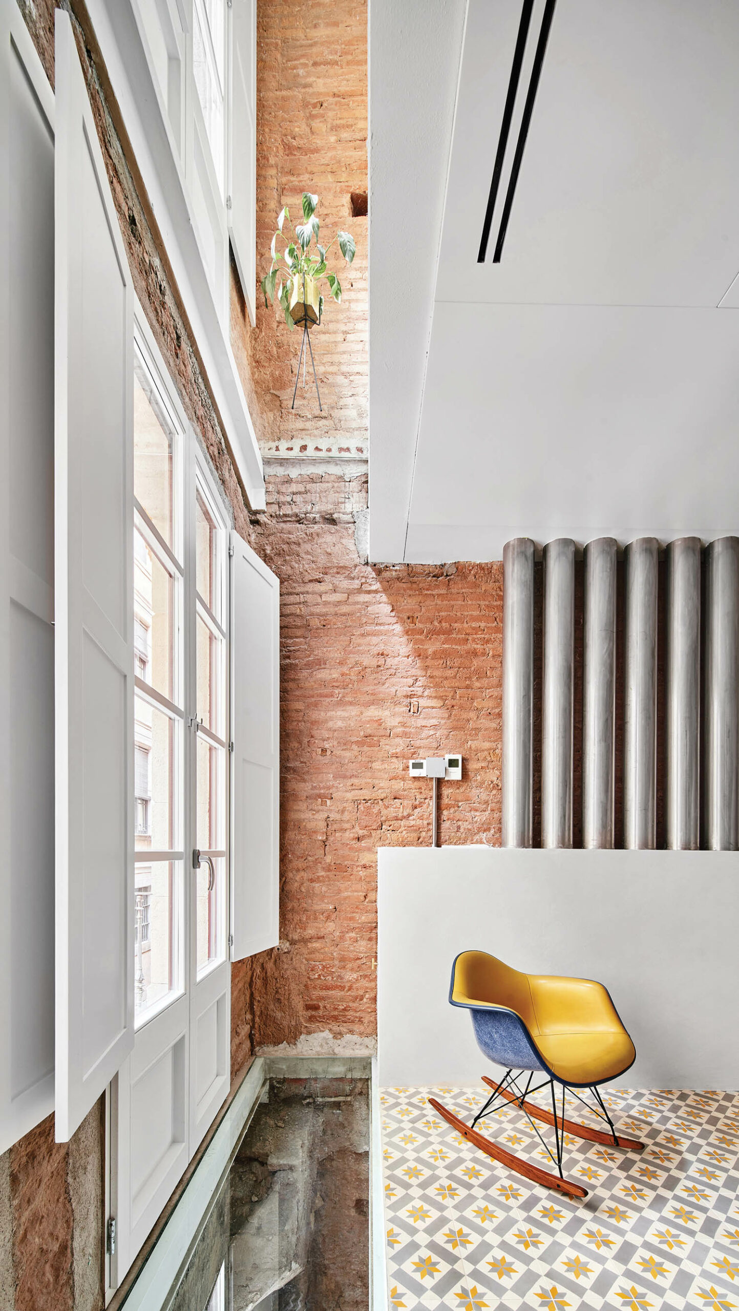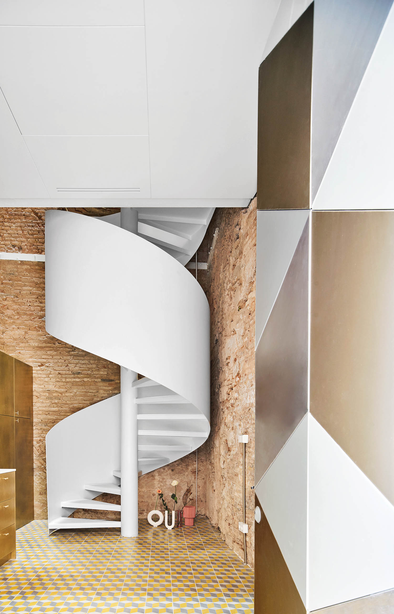 位于El Born市历史区之一,19世纪末市院称BSP20劳尔桑切斯2013年调用重构多亏监管和其他延迟,四层结构变换耗时8年完成,只有一件事保持不变:客户判定砖墙仍然裸露无变楼板全拆开 留下粗糙泥瓦壳 生动记录楼前替换楼层不触动街面或后方外墙,螺旋阶梯后风直达50尺空格天窗自然照亮后墙