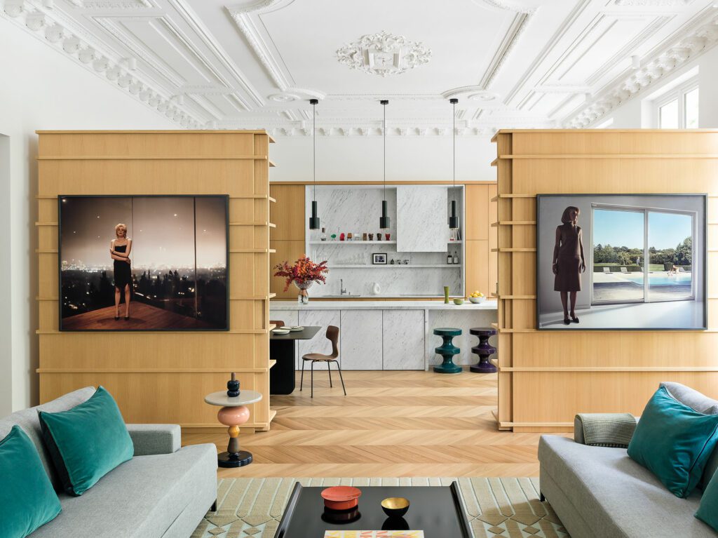 L'Observatoire的Herve Descottes观察Studio CMP的Charlotte Macex Perelman补充道,结构框架像纸质灯笼一样透明化,形成几何模式,回射拼接毯子、画陶瓷和甘蔗椅显示和往常一样赫梅斯两支法式团队编程开明, 隐式表达品牌的创意视觉